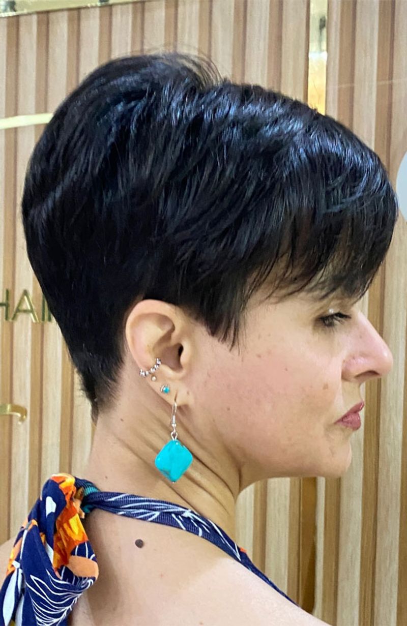 Longer on one side, shorter on the other – this modern style shifts focus from temples to the dramatic line of the cut. Many women find the bold statement empowering.