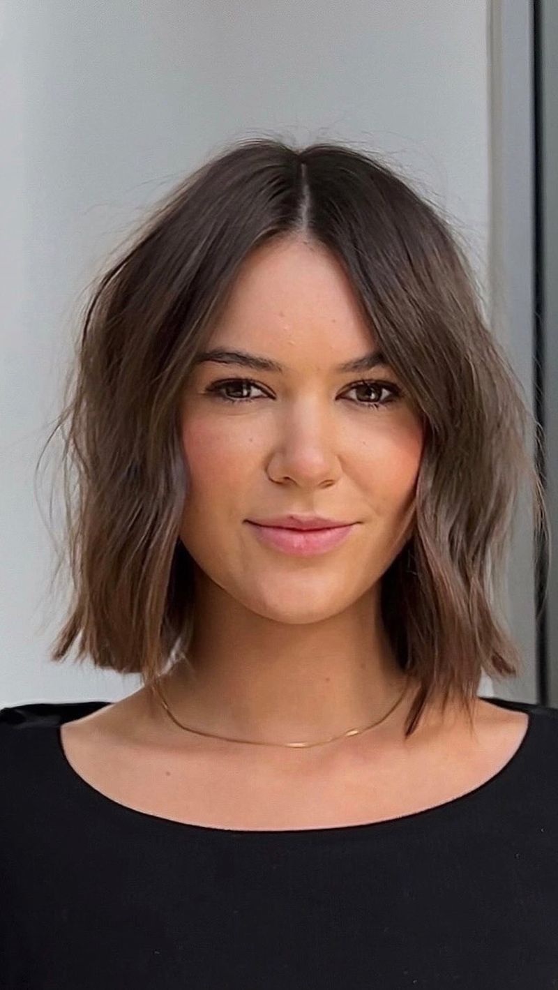 Rough-cut layers give this shoulder-skimming lob its effortless, lived-in look.