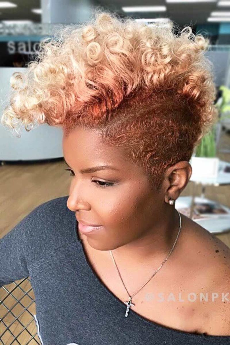 Natural mohawks feature tapered sides with a bold center strip of defined curls. This edgy yet feminine style creates height and drama while keeping maintenance simple compared to traditional mohawks.