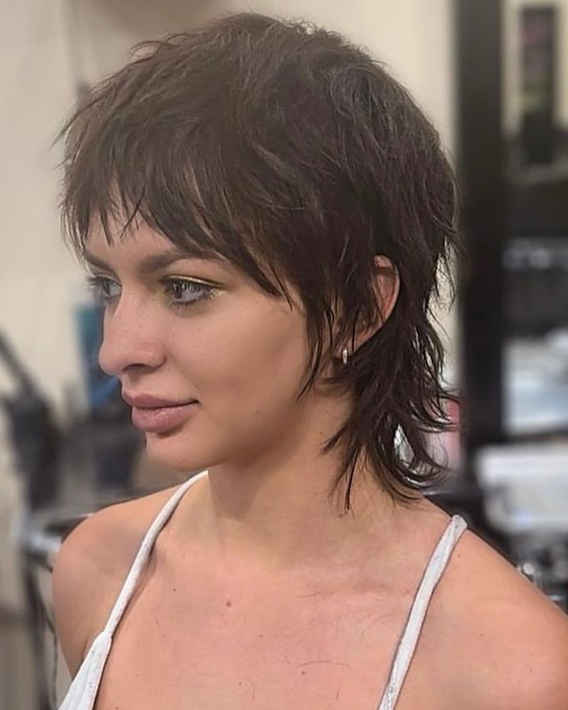 The shaggy pixie combines youthful energy with a touch of maturity. It’s a layered cut that offers volume and movement, ideal for those who enjoy a lively, dynamic hairstyle. This look can be both playful and sophisticated, adjusting to your daily needs.