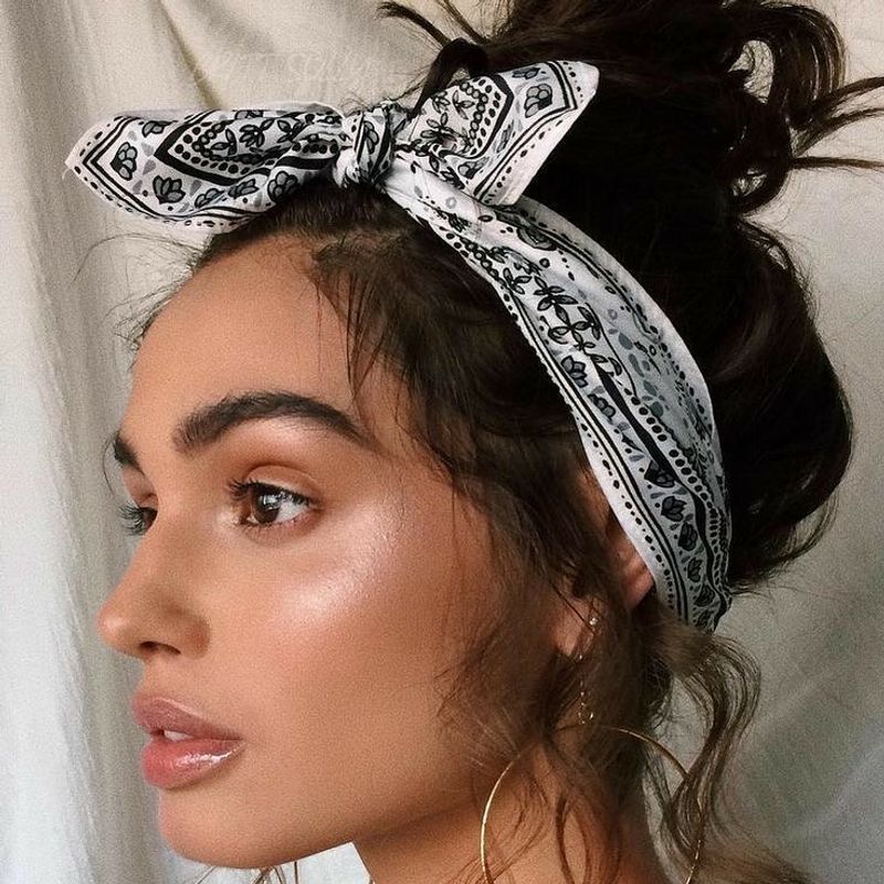 Step into the spotlight with a top knot wrapped in a bandana. This style is perfect for nights out, combining elegance and edginess. It’s easy to achieve yet makes a bold statement. Turn heads and dance the night away!