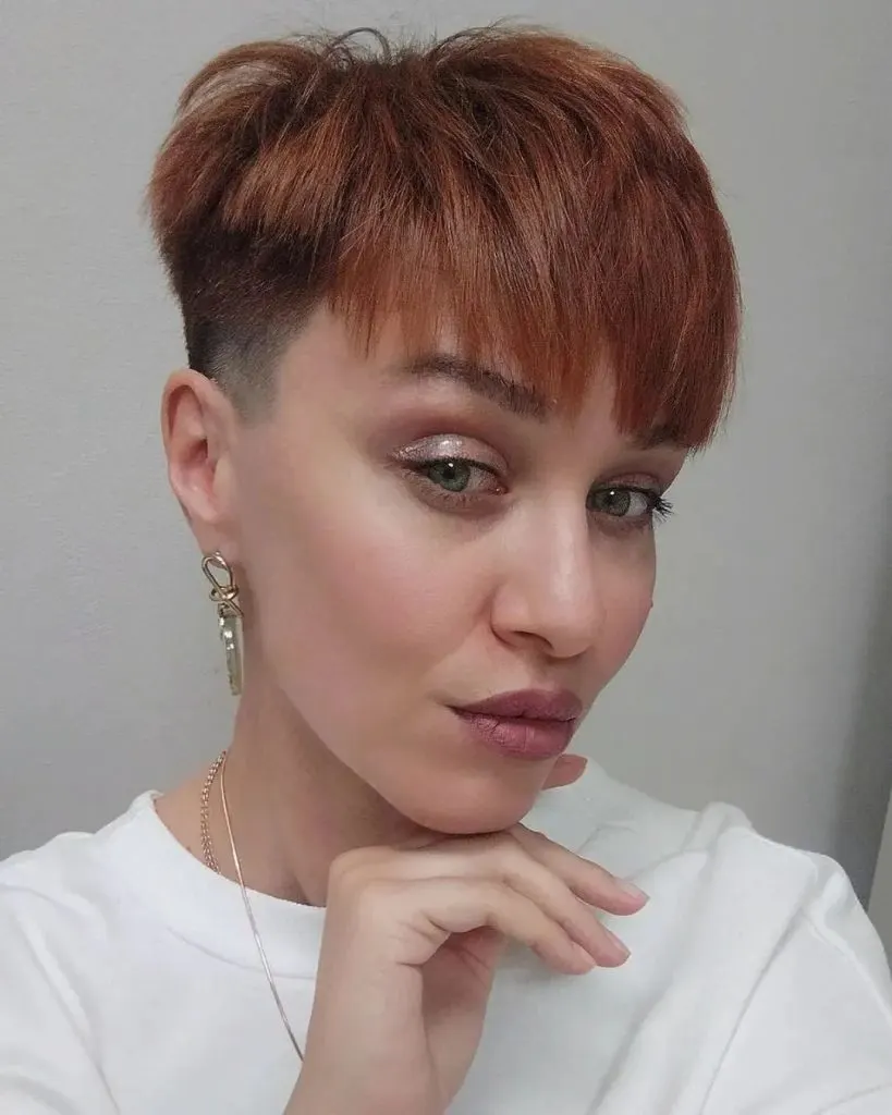 A bowl pixie is one of those retro cuts that are back in trend. Of course, copper hair color is the number one choice among stylish women this season.