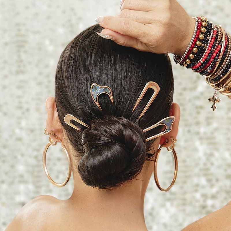 Architectural combs anchor updos while doubling as wearable art. Unlike their practical cousins, these statement pieces feature unique shapes and premium materials like horn, metal, or hand-carved wood. Slide one into a French twist or use to secure a half-up style. The weight and structure create stability while the visible portion adds sophisticated visual interest to your overall look.