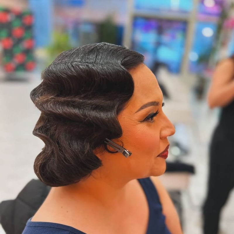 Retro ondas dos dedos bring a touch of vintage glamour. This hairstyle is a nod to the past, perfect for brides who love classic Hollywood vibes. It’s a stylish option for a themed wedding.